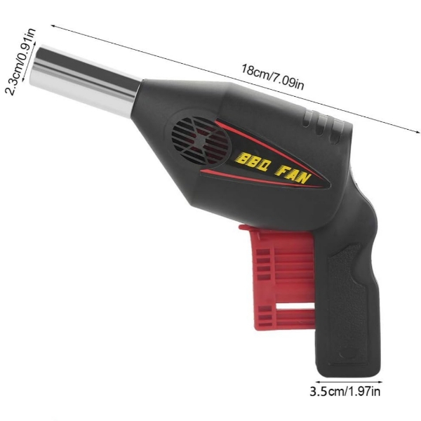 Il soffiatore a pistola è uno strumento molto utile per ravvivare sia la brace del barbecue, che i camini, soprattutto quando si desidera accendere il fuoco rapidamente e senza troppa fatica, grazie al meccanismo di aria generata dalla pressione del tasto. La pistola funziona tramite un sistema di soffiaggio, che consente di creare un flusso d’aria concentrato sulla brace, in modo da aumentare l’ossigeno disponibile e accelerare la combustione. In questo modo, si può ottenere una brace più calda e uniforme in poco tempo, senza dover utilizzare prodotti chimici o altri accendini. Il design ergonomico e ultraleggero consente di impugnarla con facilità e di utilizzarla senza affaticarsi. La ventola non necessita di energia elettrica, dunque può essere trasportato ed utilizzato per ogni evenienza: in campeggio, sul fiume, in campagna.