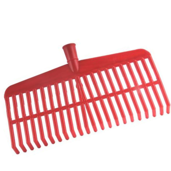 Scopa a rastrello rossa rigida per olive in PVC 22 denti con rinforzo predisposizione manico in legno o plastica
