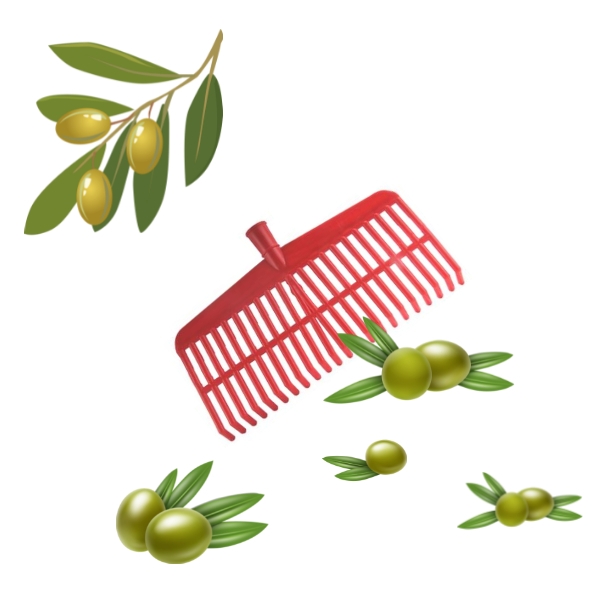 Scopa a rastrello rossa rigida per olive in PVC 22 denti con rinforzo