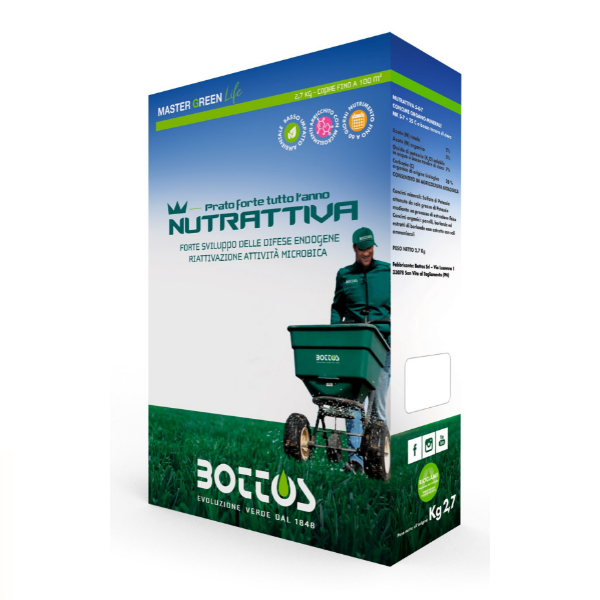 Ultima, ma non meno importante novità, è anche la possibilità di avere la confezioni di Nutrattiva 5.0.7 negli scaffali delle rivendite con scatole da 2,7 kg che coprono una superficie media di circa 30-70 m2 (a seconda delle esigenze e delle dosi d’impiego) in modo da soddisfare le esigenze delle piccole superfici, delle fioriture da impiantare in terrazzo o dell’invaso a carattere hobbistico.