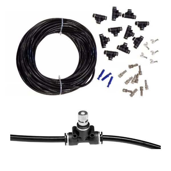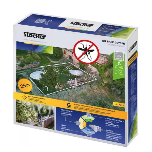 Accessorio per i nebulizzatori Geyser che consente di ampliare il raggio d'azione dei trattamenti anti-zanzare. Il kit è facile da assemblare, tagliando il tubo e inserendo i raccordi e/o gli ugelli nei punti prescelti: per combinarlo al nebulizzatore è sufficiente attaccarlo a uno degli attacchi per gli ugelli già presenti sul nebulizzatore, dopo aver rimosso l'ugello. Si fissa lungo il perimetro di siepi, staccionate o altre piante ornamentali.