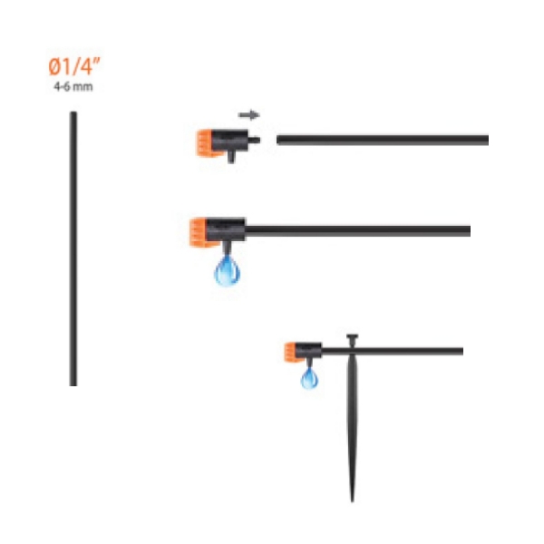 Distribuisce l’acqua ad una singola pianta, goccia dopo goccia, con estrema precisione. Si innesta perfettamente sul tubo capillare, con una semplice pressione.