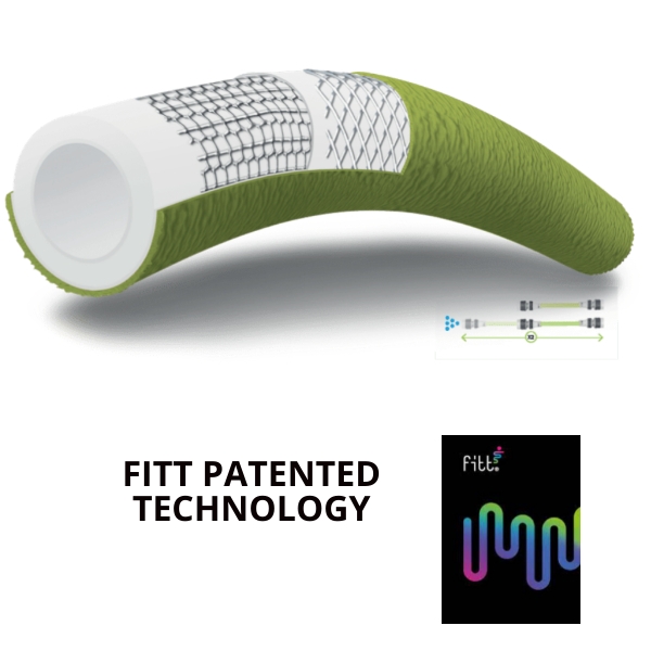 I materiali : L’unico tubo estensibile presente sul mercato, realizzato con un processo di estrusione a strati utilizzando TPE (elastomero plastico) ed esclusivo rinforzo magliato in nylon.