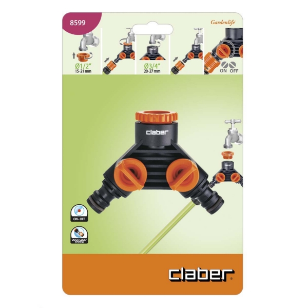 Presa Claber a due vie Ø1/2" - Ø3/4" ART. 8599