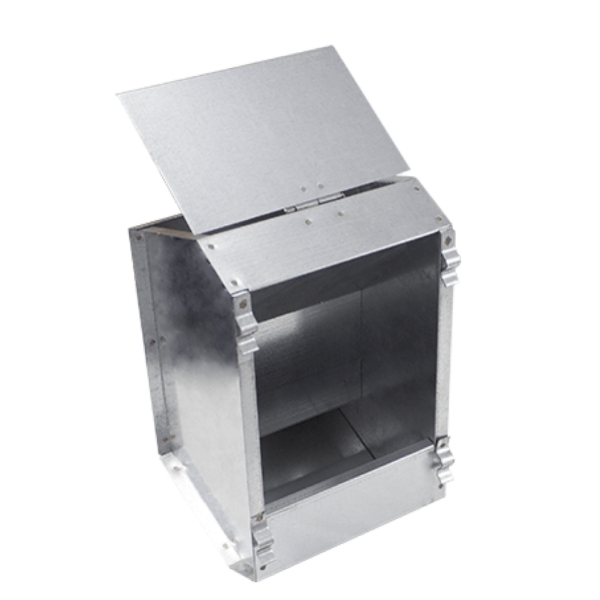 Mangiatoia a tramoggia per conigli e altri animali simili in lamiera zincata. È dotata di un unico scomparto e può essere agganciata alla gabbia o alla rete di recinzione. Fondo forato.