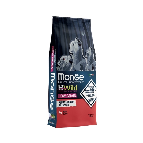 Monge Natural Superpremium BWild Low Grain All Breeds Puppy and Junior Cervo è un alimento completo e bilanciato per cani cuccioli.