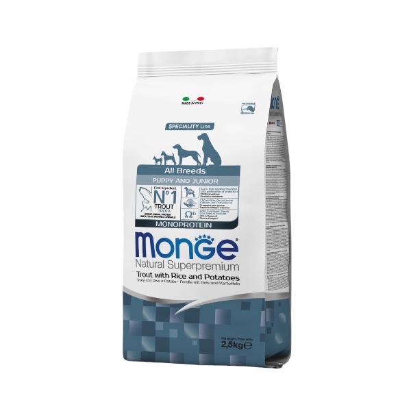 Monge superpremium all breeds adult monoproteico trota, riso e patate KG 2.5