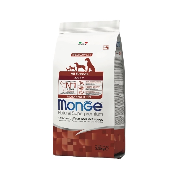 Monge superpremium all breeds adult monoproteico agnello, riso e patate KG 2.5