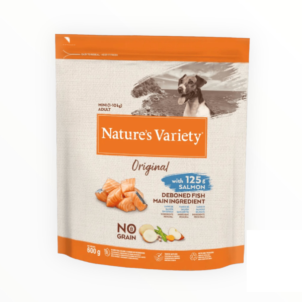 Alimento completo ed equilibrato senza cereali per cani adulti di taglia mini. Elaborato con carne di salmone diliscata come ingrediente principale, frutta e ortaggi selezionati con cura e fonti naturali di carboidrati alternativi.
