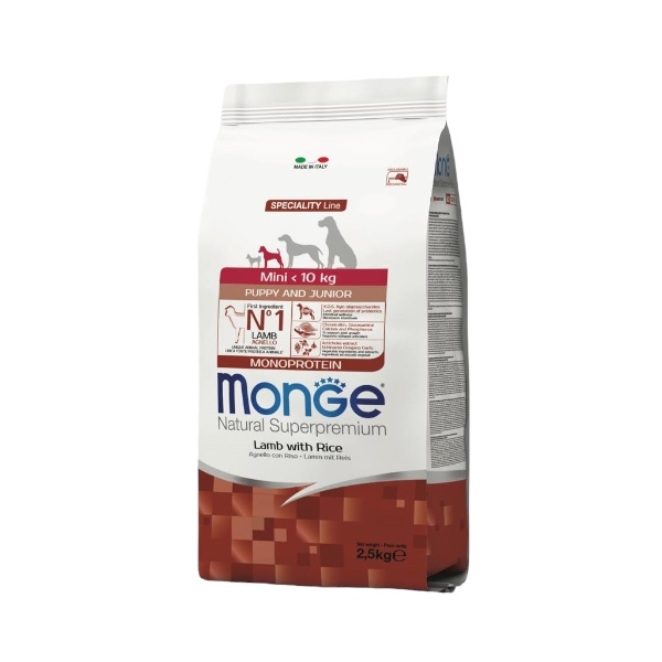 Monge superpremium mini-10 kg Puppy&Junior monoproteico agnello e riso KG 2.5