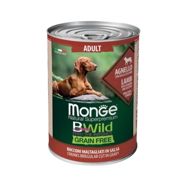 Monge bwild grain free adult agnello zucca e zucchine 400 gr