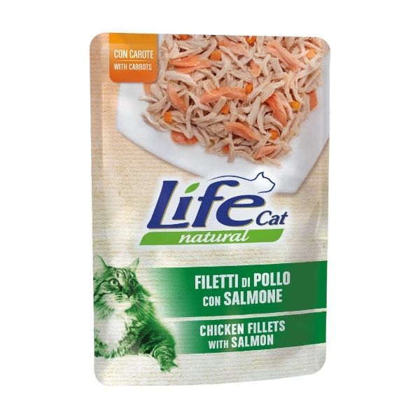 Life cat filetti di pollo con salmone e carote 70 gr