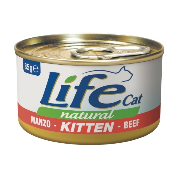 LIFE CAT KITTEN MANZO 100% naturale. Bocconcini di vero manzo macinato fine, con uova ed altri ingredienti preziosi per la crescita del gattino. Il tonno e le uova sono le migliori fonti proteiche occorrenti per lo sviluppo del gatto.