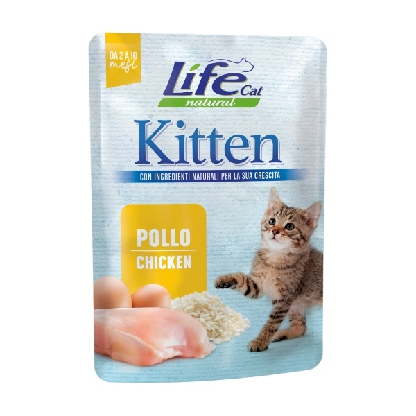 LIFE CAT NATURAL KITTEN POLLO ( BUSTE ) "Petto di pollo macinato fine, con uova ed altri ingredienti preziosi per la crescita del gattino.