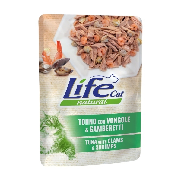LIFE CAT NATURAL TONNO CON VONGOLE E GAMBERETTI ( BUSTE )
