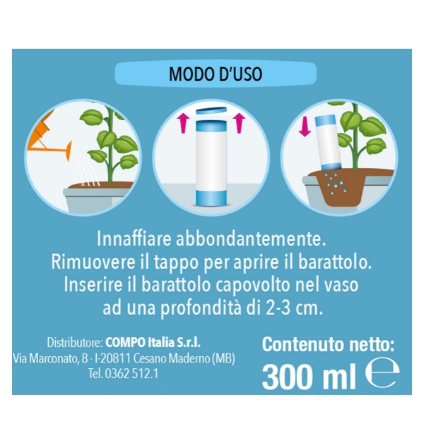 Annaffiare abbondantemente. Aprire il barattolo ed inserirlo nel vaso per una profondità di 2-3 cm.